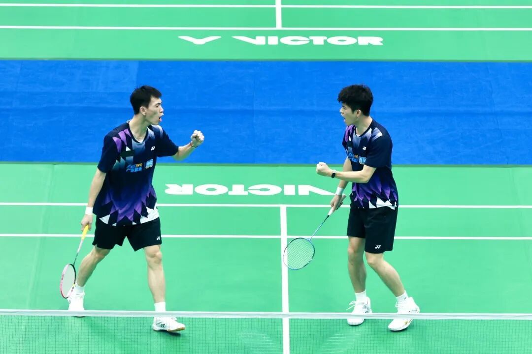 在男双D组(55岁-64岁)决赛中,广东队王明基/李钧照以2比0击败福建组合李昆/贾雪涛,摘得桂冠,这是本届全运会群众比赛羽毛球项目的首金。
