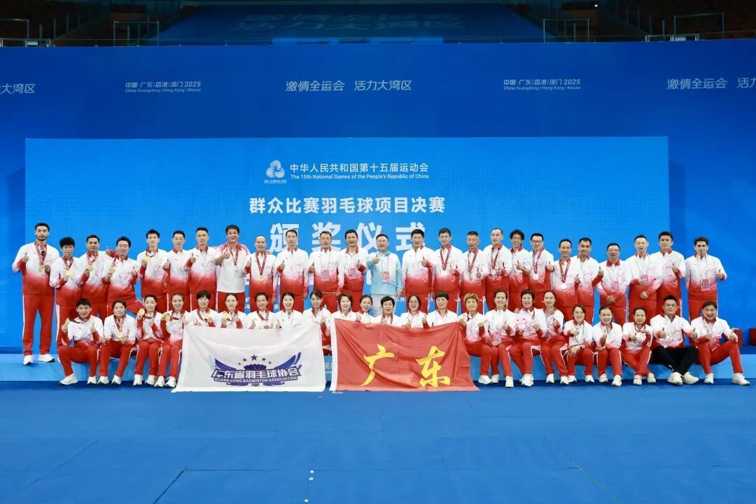 10月26日,第十五届全国运动会群众比赛羽毛球项目决赛在深圳市体育中心体育馆决出四个年龄组别(团体、双打)项目的全部金牌。广东队勇夺2金2银,创参加全运会群众比赛羽毛球赛的历史最佳成绩。